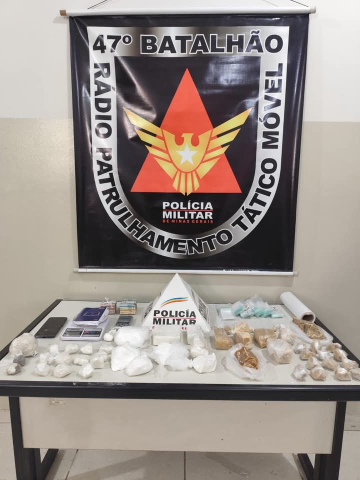 – 27 pedras grandes de crack / – 07 porções de crack / – 06 porções de cocaína / – 16 pedras grandes de cocaína / – 01 porção de maconha / – R$7718.75 / – 02 balanças de precisão / – 02 porções de material para preparo / – 01 caderneta com anotações do tráfico – 01 aparelho celular e 1 pessoa foi presa.