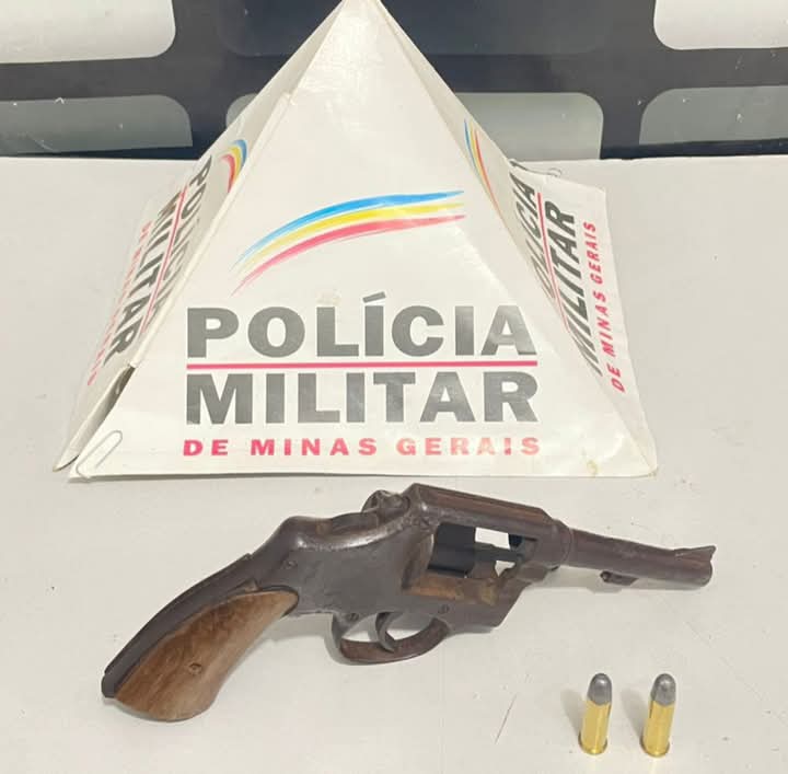 As equipes intensificaram o patrulhamento e localizaram o suspeito em um estabelecimento comercial. Durante a abordagem e busca pessoal, foi encontrado em sua cintura um revólver calibre .38, municiado com duas munições intactas.