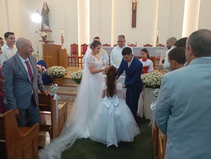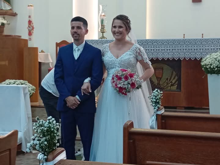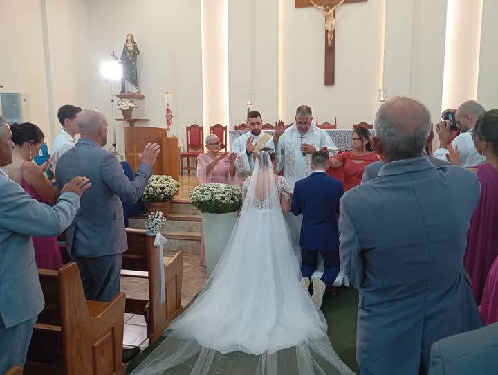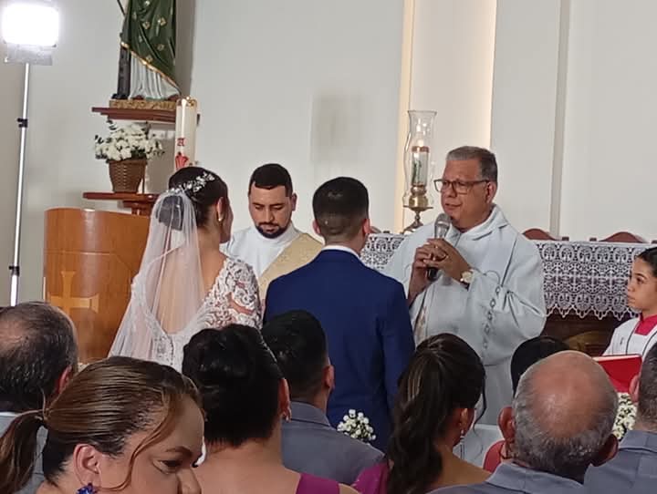 |O padre Jamir celebrou mais uma belíssima cerimônia de casamento, desta vez ocorreu o matrimõnio de Rodrigo e Glaucia, na tarde do último sábado 10 de maio de 2025, por volta de 16:00 horas, na Paróquia S. Bárbara, em Fervedouro.