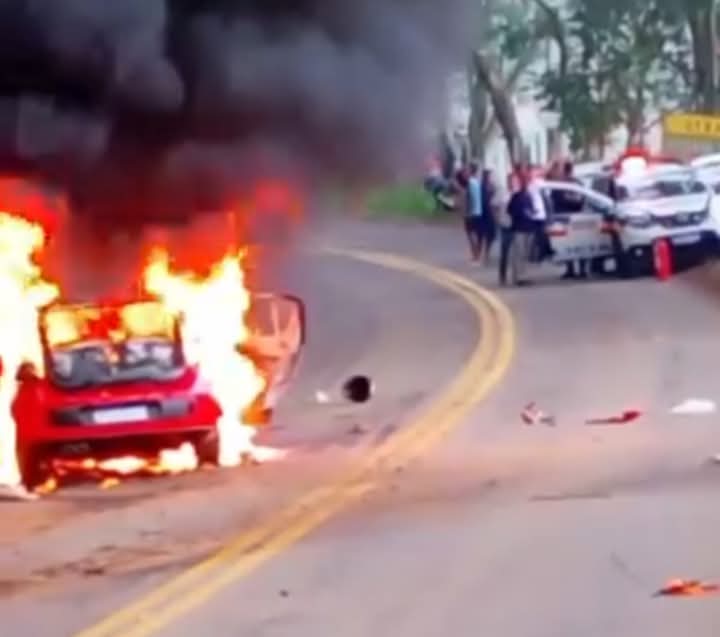 Na imagens que são chocantes ainda aparece a imagem e os gritos de uma mulher que estava em desespero pedindo “tirem ela do carro”, mas era impossível, as chamas já tinham dominado o veículo.