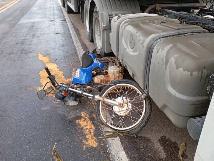 O motociclista já deveria estar reduzindo a velocidade da moto, pra tentar procurar um acostamento à direita, para chegar em casa, mas que não existe. Acabou sendo atropelado com moto e tudo. A moto foi arrastada pela carreta até a cerca de uns 80 metros, onde o carreteiro, um motorista ainda muito jovem, parou no sentido contrário da pista.