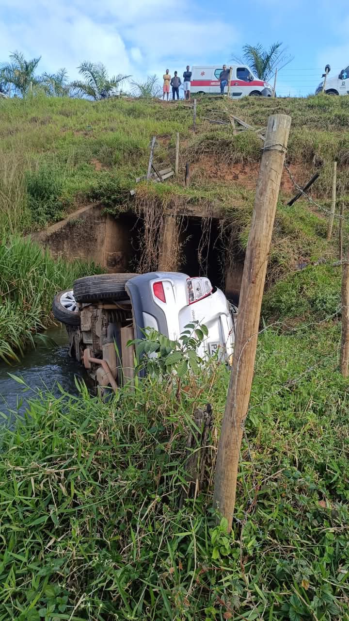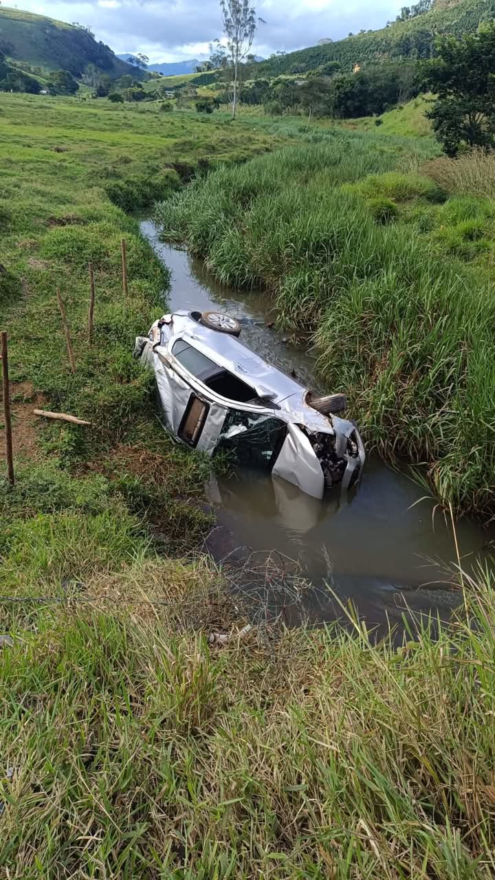 Um acidente na saída de Divino para Carangola aconteceu na tarde deste sábado, 24 de maio. O carro saiu da pista e caiu dentro de um córrego, depois de voar uma ribanceira.