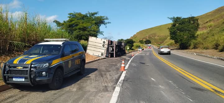 No dia 25/05/2025 a Polícia Rodoviária Federal de Muriaé atendeu ocorrência envolvendo veículo de carga (carreta) que tombou na BR 116 no KM 679 em Miradouro.
