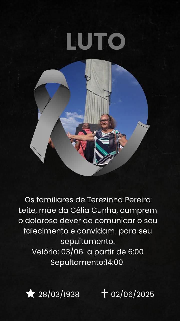 FALECEU MÃE DA CÉLIA CUNHA, DE MIRADOURO