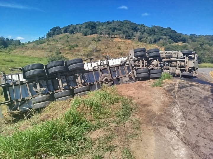 A carreta permanece no local, e o trânsito segue com restrição parcial. A perícia da Polícia Civil foi acionada para as devidas providências.
