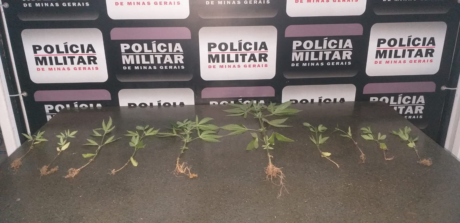 Chegando no local os policiais Sargento Tornel e Sargento Barcelos realizaram diligências e encontraram a plantação de 10 pés de maconha, tendo os militares arrancado os pés da canabis e prenderam o agricultor, que seria maior de idade.
