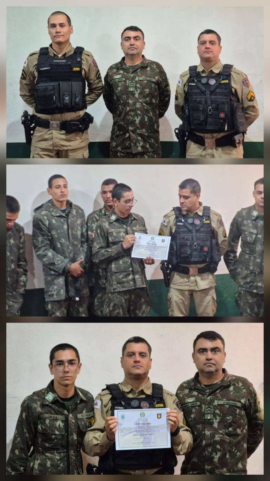 Ao final da instrução o 3° Sargento Bruno Lozi foi contemplado com Certificado de reconhecimento e agradecendo pela instrução ministrada.