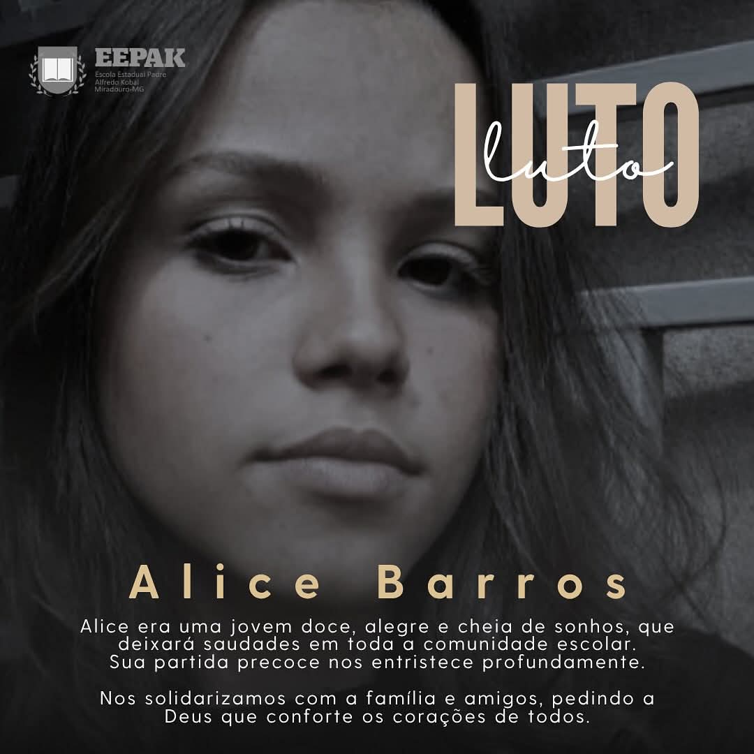 Os familiares cumprem o doloroso dever de comunicar ,o falecimento de Alice Anastácia Souza Barros e convidam parentes e amigos para o seu sepultamento.