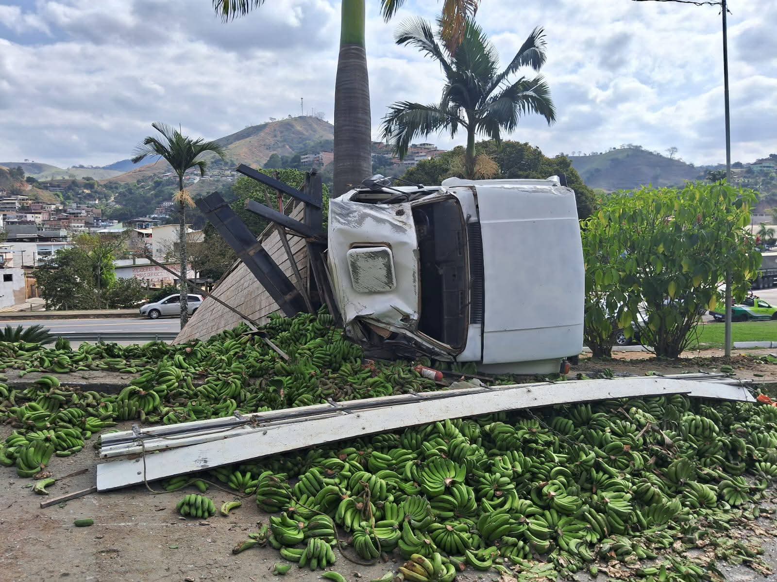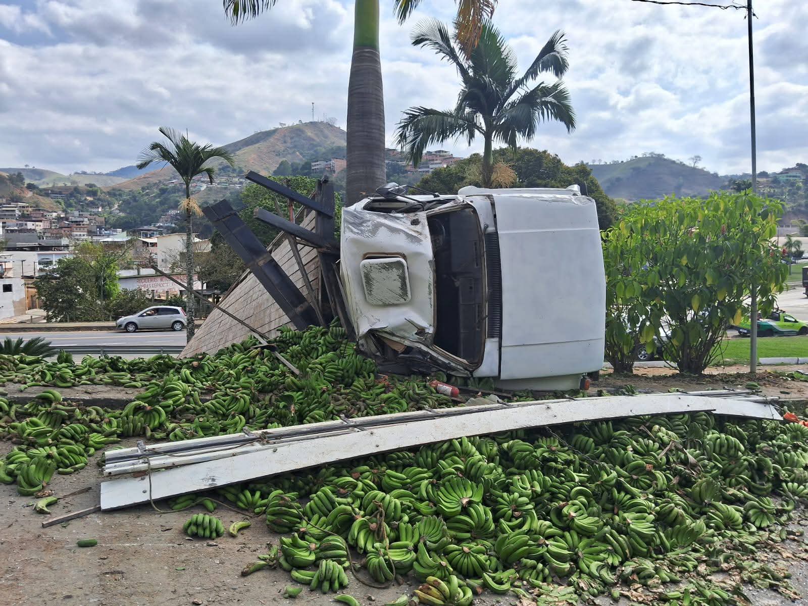 Por volta de 12:30, desta sexta, 25/07/25, um caminhão carregado de bananas, que vinha do sentido Vieras para Miradouro, pouco antes de acessar a BR 116, o condutor perdeu o controle do veículo e acabou saindo da pista, colidindo contra um pé de Palmeira no local.