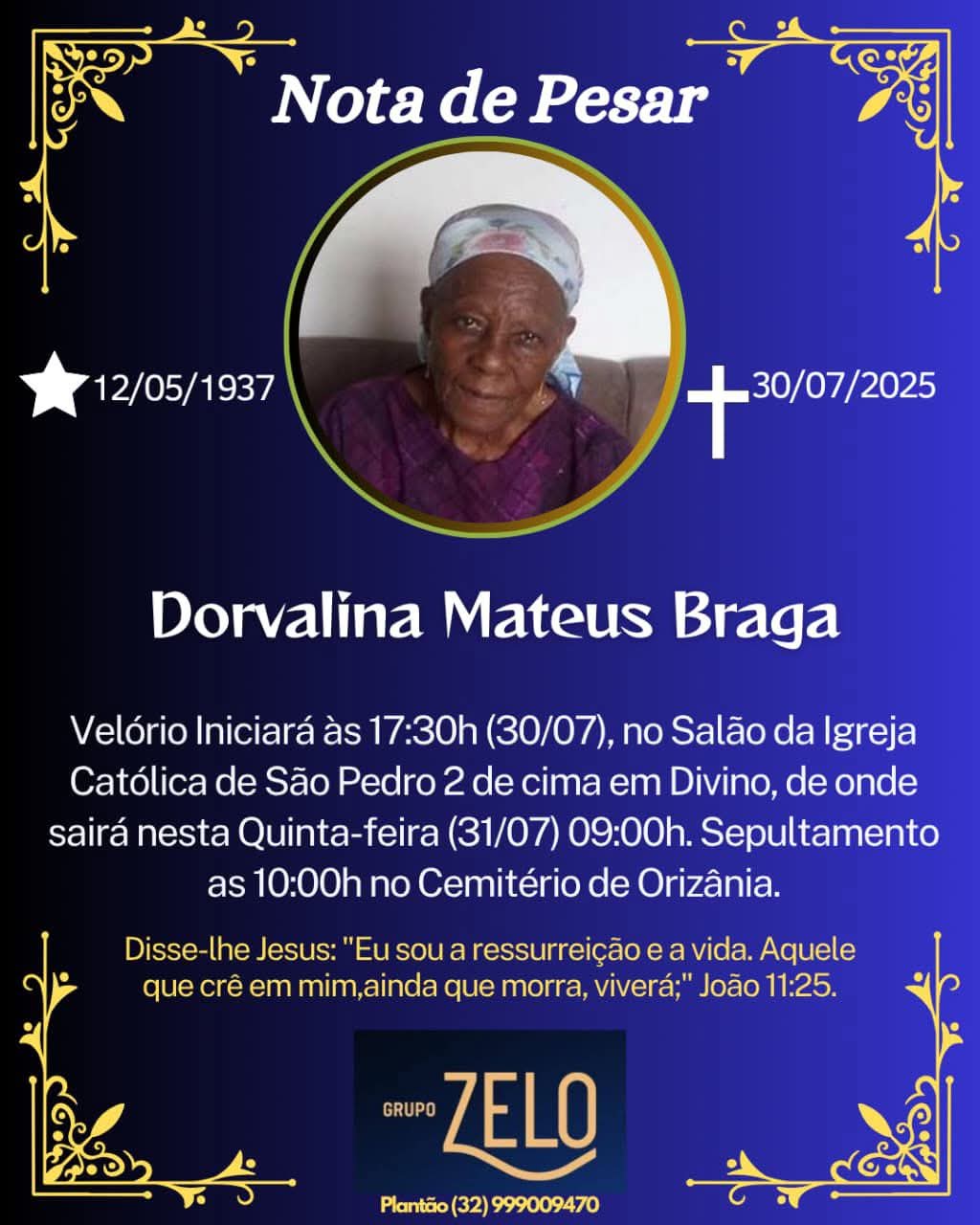 Sem categoria FALECEU DONA DORVALINA MATEUS BRAGA, DE SÃO PEDRO DE CIMA- DIVINO 30 de julho de 2025 0 Post Views: 0