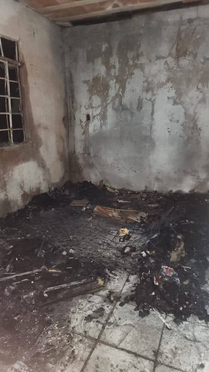 Ao chegarem ao local, os policiais notaram fumaça saindo da residência. Questionada, a mulher admitiu ter colocado fogo em algumas roupas dentro de casa antes de sair. As chamas se espalharam rapidamente, atingindo a cozinha e outros cômodos, o que impossibilitou o combate inicial por parte da equipe policial.