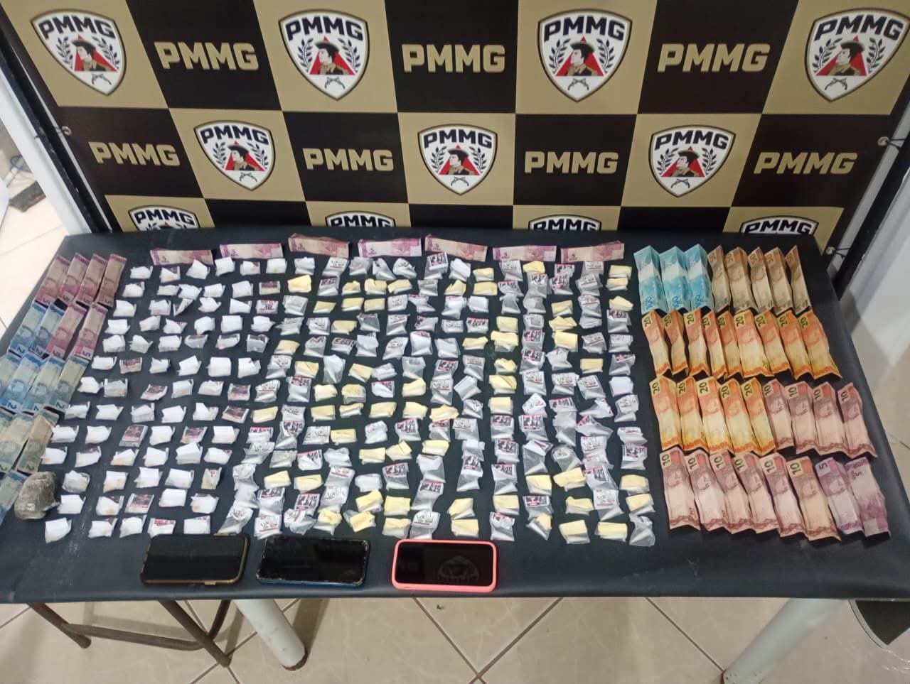 Após um período de monitoramento e levantamento do modus operandi dos suspeitos, a PMMG montou uma campana em um beco conhecido como ponto de venda de drogas. Dois indivíduos se aproximaram e, ao receberem a ordem de parada, fugiram. Eles foram perseguidos, alcançados e um deles foi encontrado com uma sacola cheia de drogas.