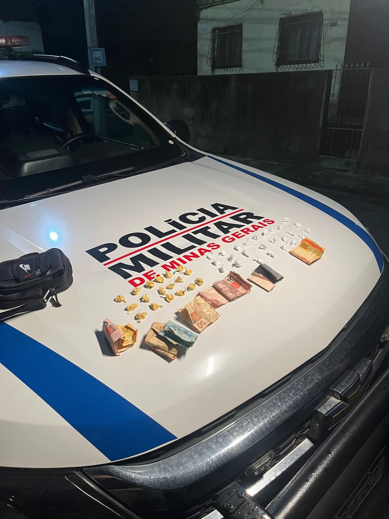 Na busca pessoal, foram encontrados com o abordado R$ 537,50 em dinheiro e um aparelho celular. As buscas no local da abordagem permitiram que as equipes da PMMG localizassem o material entorpecente.