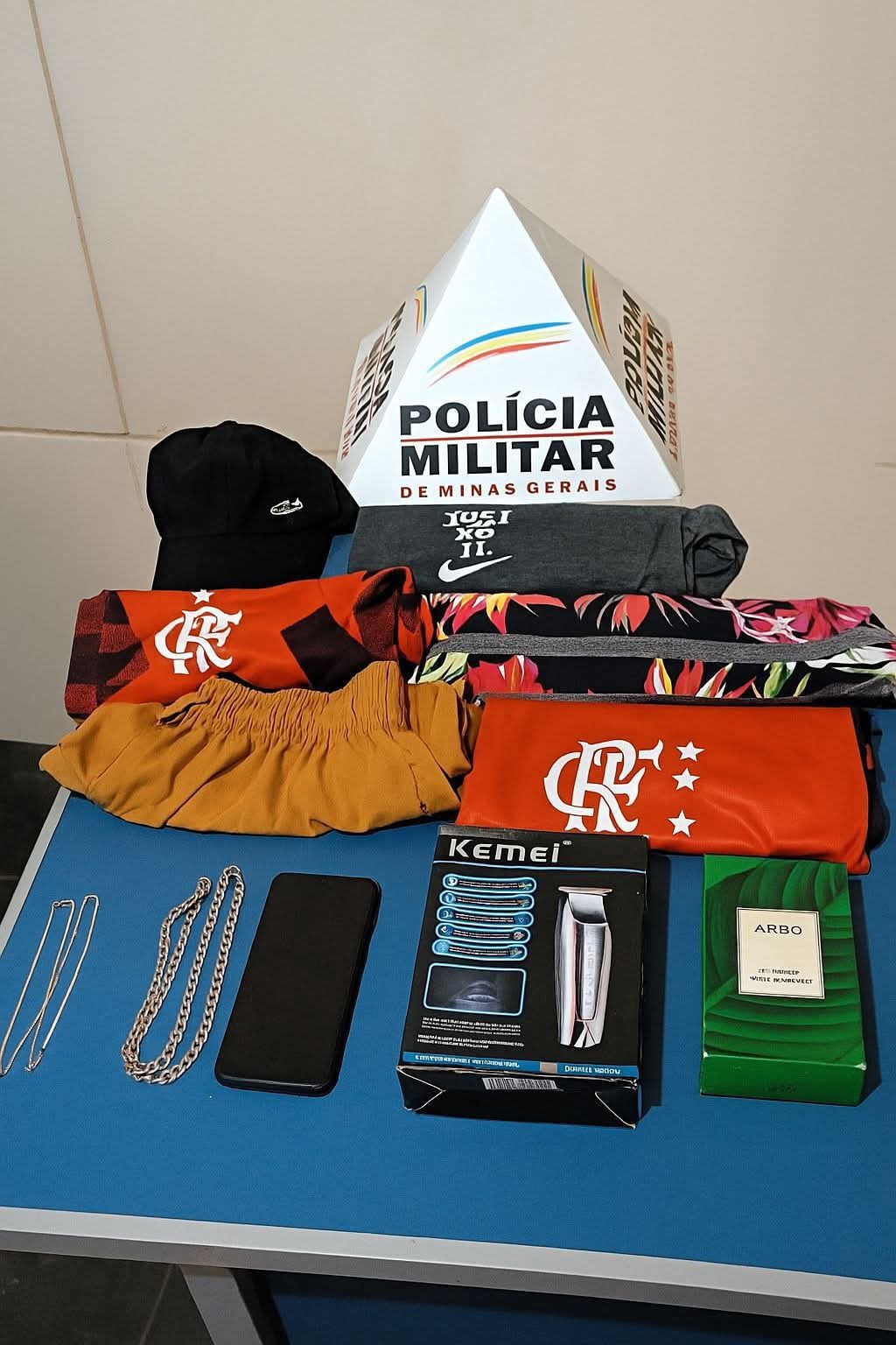 Após diligências e levantamentos, os militares chegaram à identificação e localização do indivíduo. Ao ser abordado, o autor entregou todos os objetos furtados que estavam em seu poder.