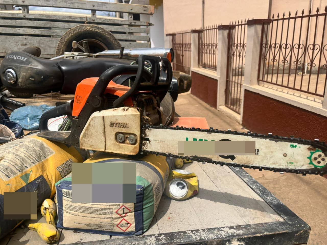 Durante as apurações, foi constatado que o veículo utilizado pelos suspeitos havia sido furtado e apresentava sinais de adulteração. Mediante buscas, as equipes localizaram e recuperaram ainda uma motocicleta e uma caminhonete, ambas com registro de furto, além de uma motosserra e um celular encontrados na residência alvo do mandado.