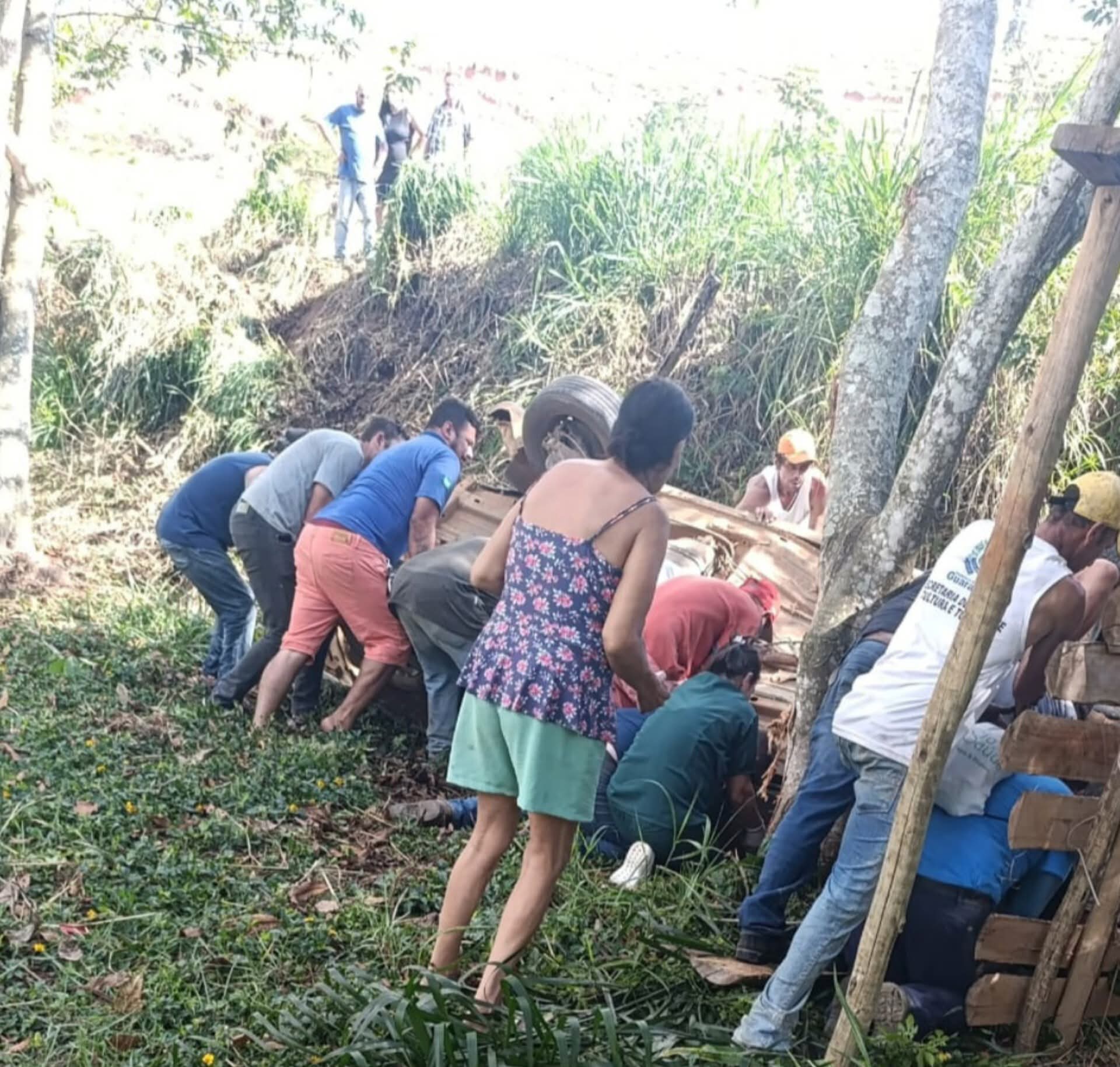 Uma mulher fervedourense, de 42 anos, sofreu uma grave acidente na última quinta- feira ( ) quando o carro que ela conduzia do sentido Fervedouro para Divino, ter saído da pista, na região do Bairro Santa Rita.