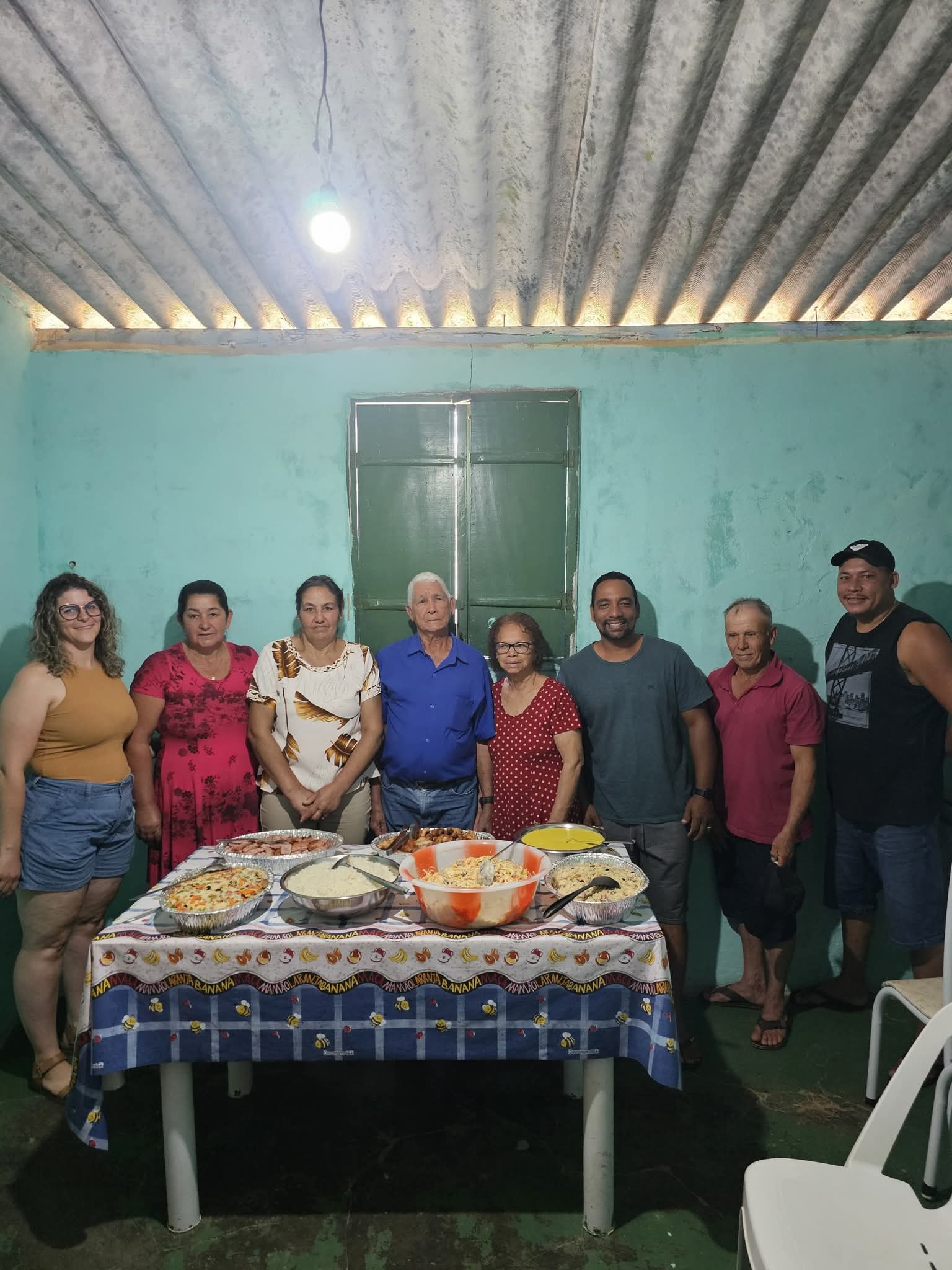 O almoço foi todo preparado por Janaína uma de suas filhas que mora em Muriaé, casada com Gean, que um chefe de cozinha. ” Comidinhas da Jana que fez tudo lá e trouxe prontinho para a festa. Eles fazem comidas para festas e atendem pelo (32)98426-7010
