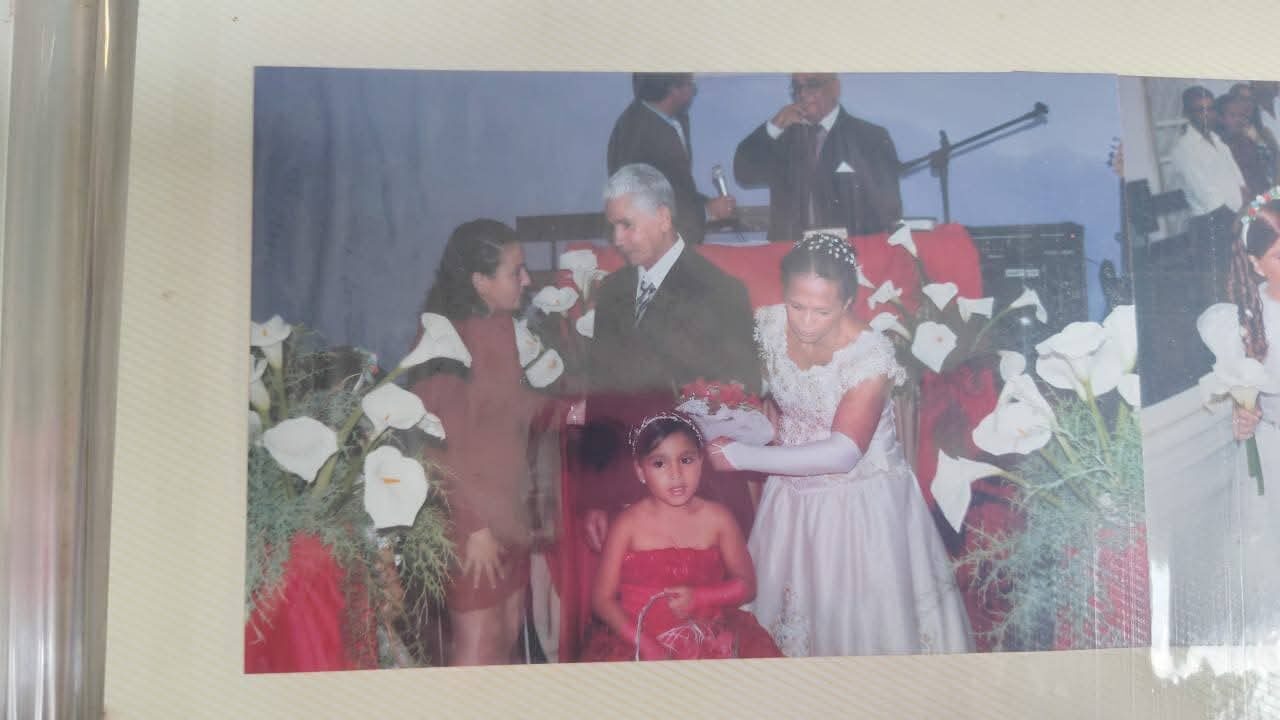 Santinha nos contou que tinha 15 anos e conheceu ele na casa da irmã dele, quando ele tinha 17 anos. Chegaram a noivar, mas às naquela época, os pais dele não aceitaram o casamento, pois ela era morena, o preconceito pesou, por isso o namoro terminou, ele foi viver a vida dele e ela também.