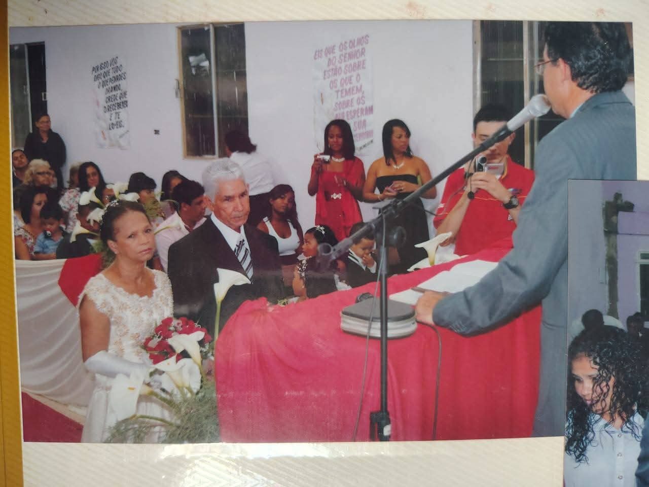 Com aquele abraço apertado, ela não aguentou e cedeu mais uma vez aos encantos de Júlio, que agora já viúvo, sem os pais pra ficarem falando na cabeça dele que ela era “de cor”, eles começaram a namorar, noivaram, marcaram o casamento e dessa vez se casaram em uma igreja Evangélica, com direito a vestido de noiva para Santinha, terno e gravata para o senhor Júlio e damas e pagens, padrinhos, com aquela festa de casamento, com muitos presentes.