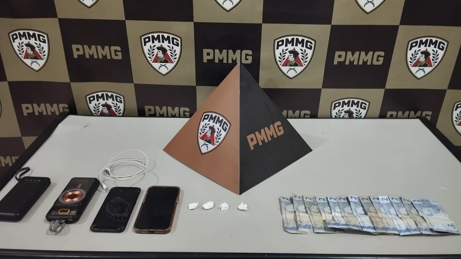Em atendimento a denúncias de tráfico na região, militares realizaram monitoramento na Rua Santos Dumont. Após observarem a movimentação, a equipe da PMMG realizou a abordagem, prendendo um homem e apreendendo: