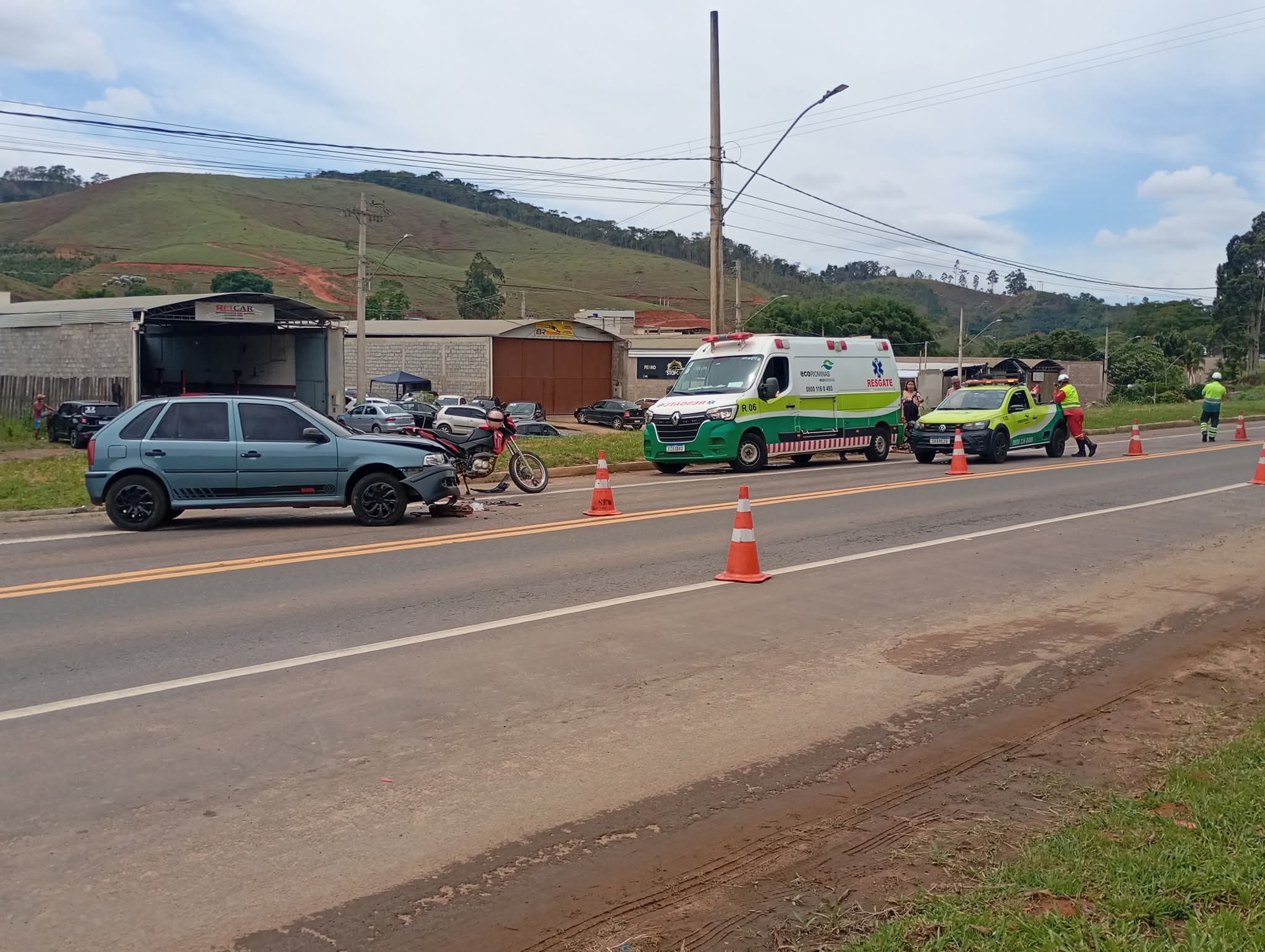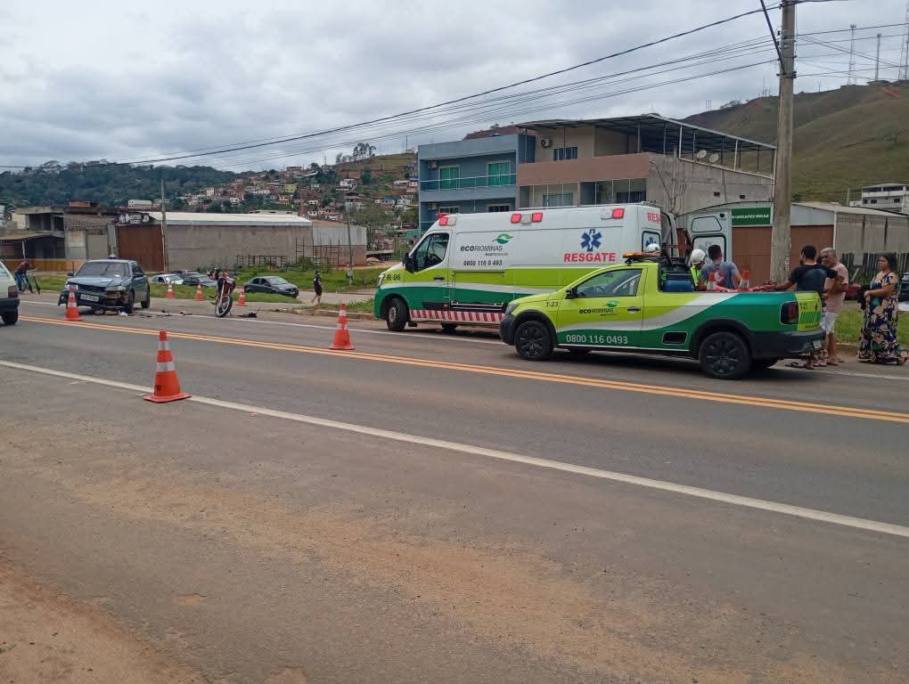 Por volta de 10:15 da manhã houve uma colisão entre carro e motocicleta na BR 116, no perímetro urbano de Fervedouro, envolvendo um carro e uma motocicleta.