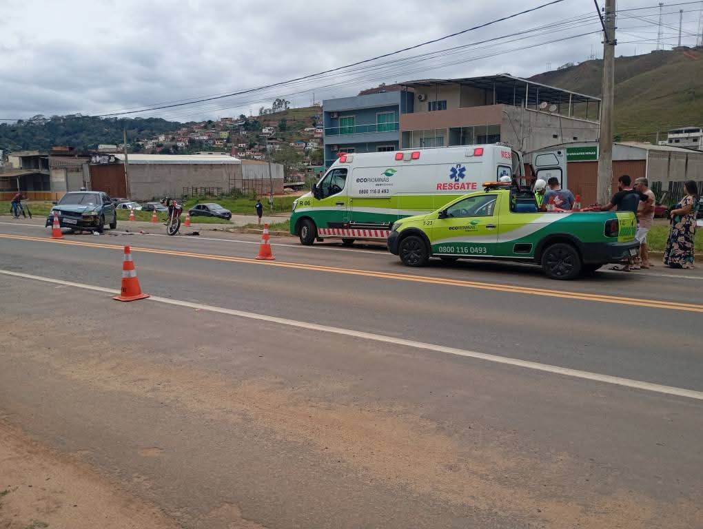 O carro estava saindo da Avenida José Antônio da Silva e entrando na BR 116, vindo a atingir a motocicleta que seguia pela BR 116, no sentido Fervedouro para Divino.