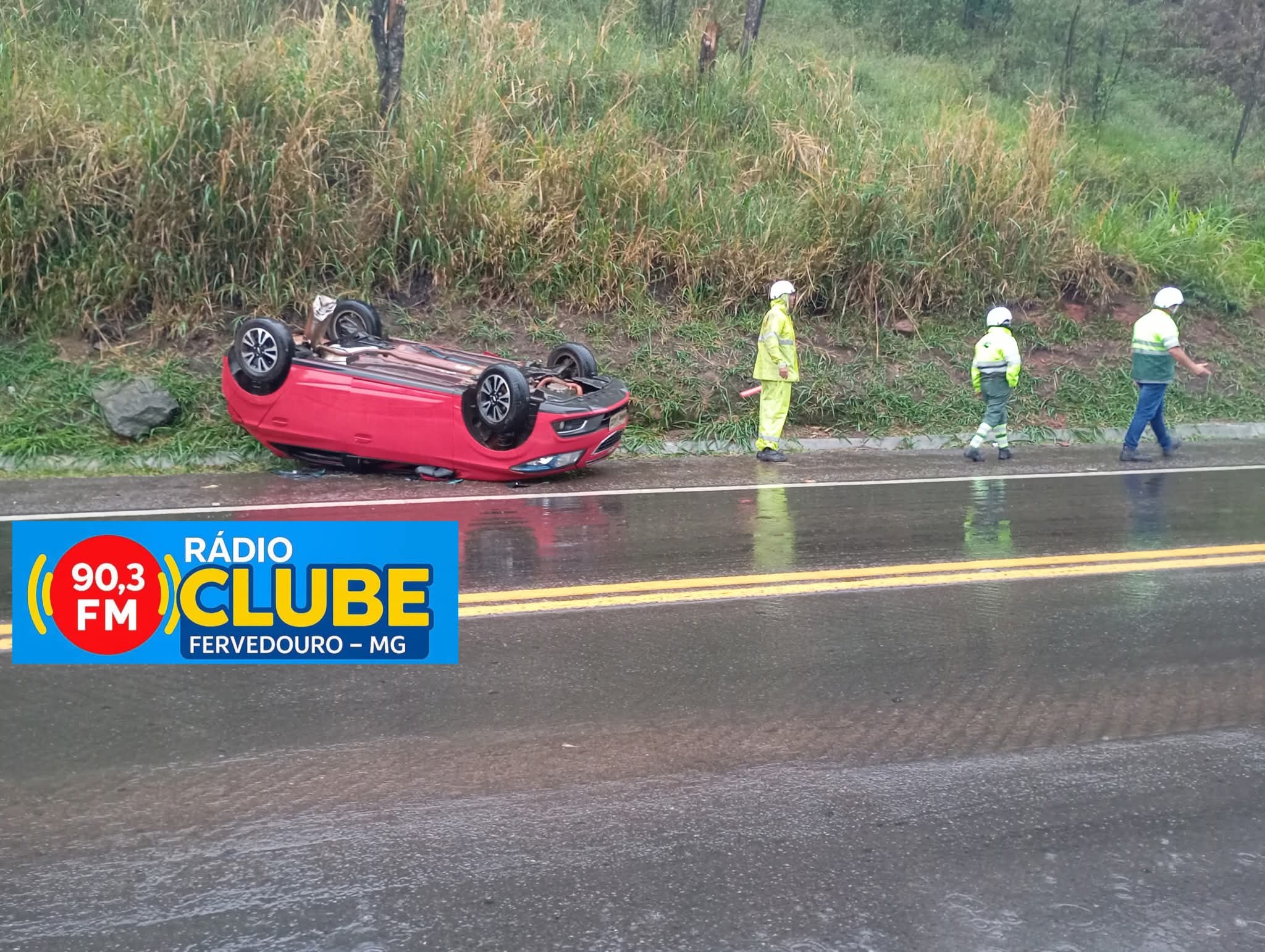 Um carro de passeio emplacado em Juiz de Fora capotou após o condutor perder o controle ao fazer uma curva na BR 116., próximo à cidade de Fervedouro.