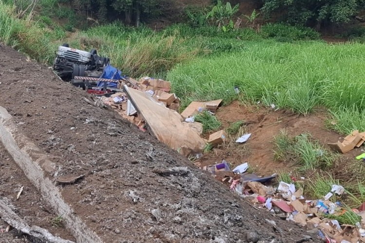 Na manhã desta terça-feira (25), uma carreta carregada com produtos de papelaria, alimentos e diversos itens capotou na BR-116, logo após o Trevo de Itamuri, em Muriaé.