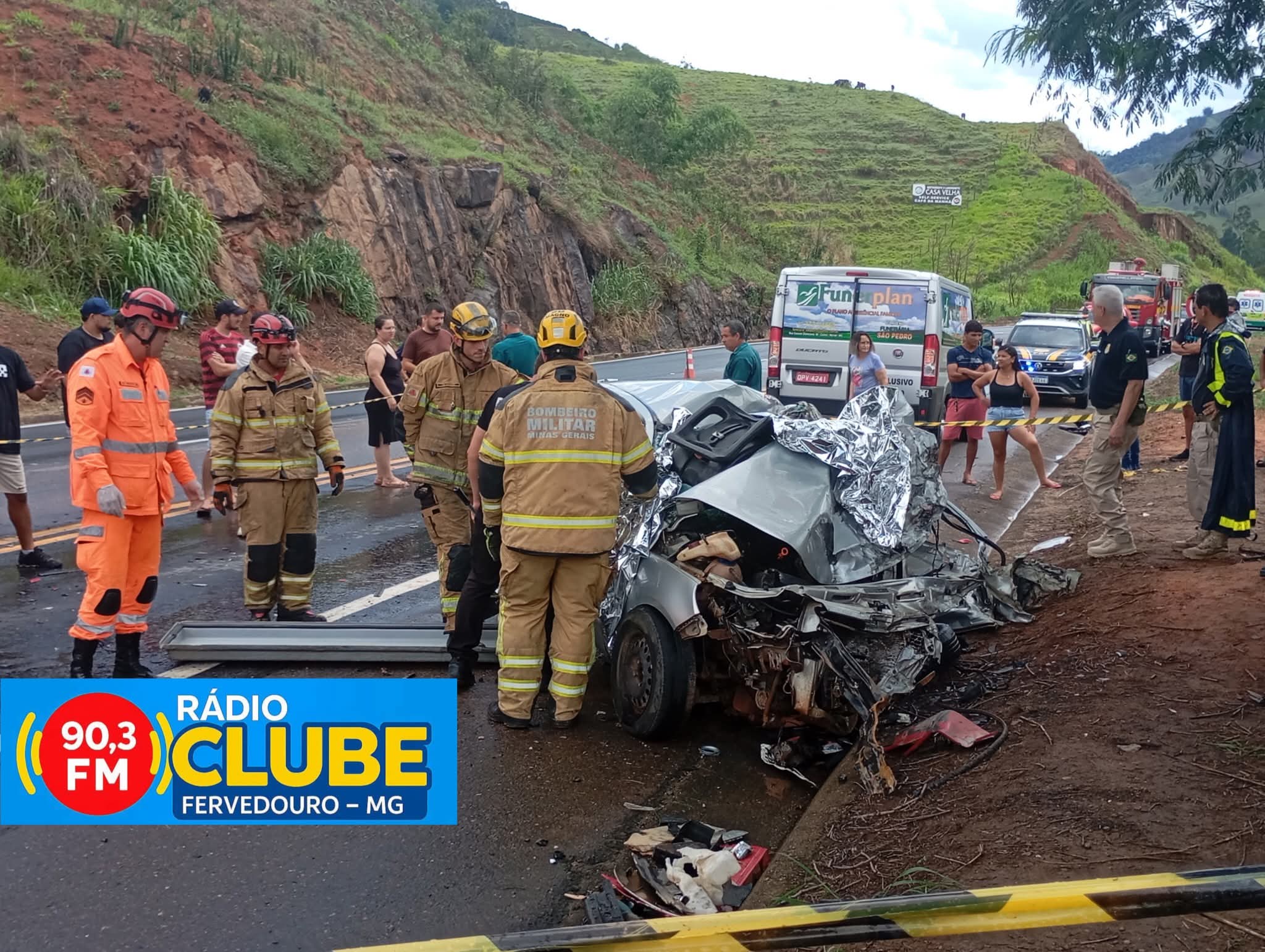 Também se fez presente uma equipe do Corpo de Bombeiros de Muriaé para fazer o desencarceramento dos corpos que ficaram presos no automóvel devido ao forte impacto.