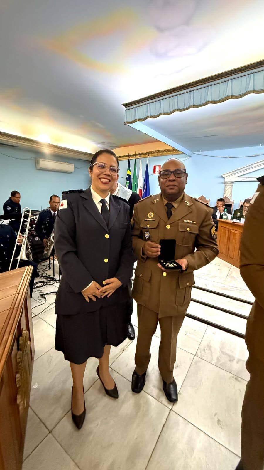 A solenidade, marcada por forte espírito de civismo, contou com a participação especial da banda da Aeronáutica, que abrilhantou o evento com apresentações que ressaltaram o patriotismo e a valorização das forças de segurança e demais profissionais homenageados.