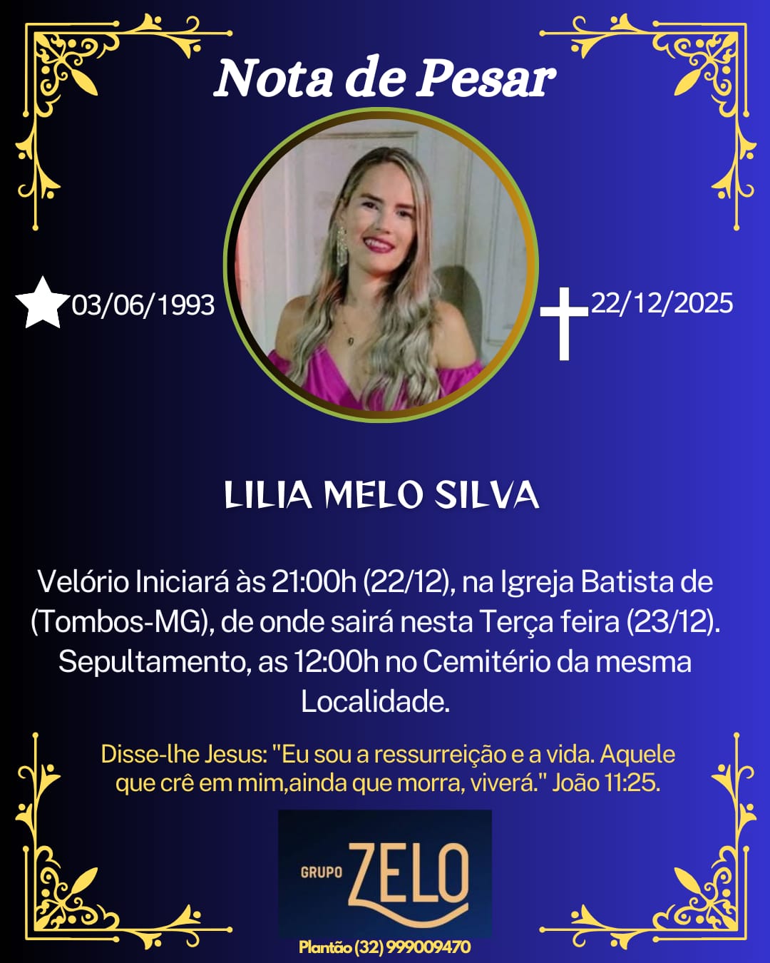 FALECEU LILIA MELO SILVA, DE TOMBOS