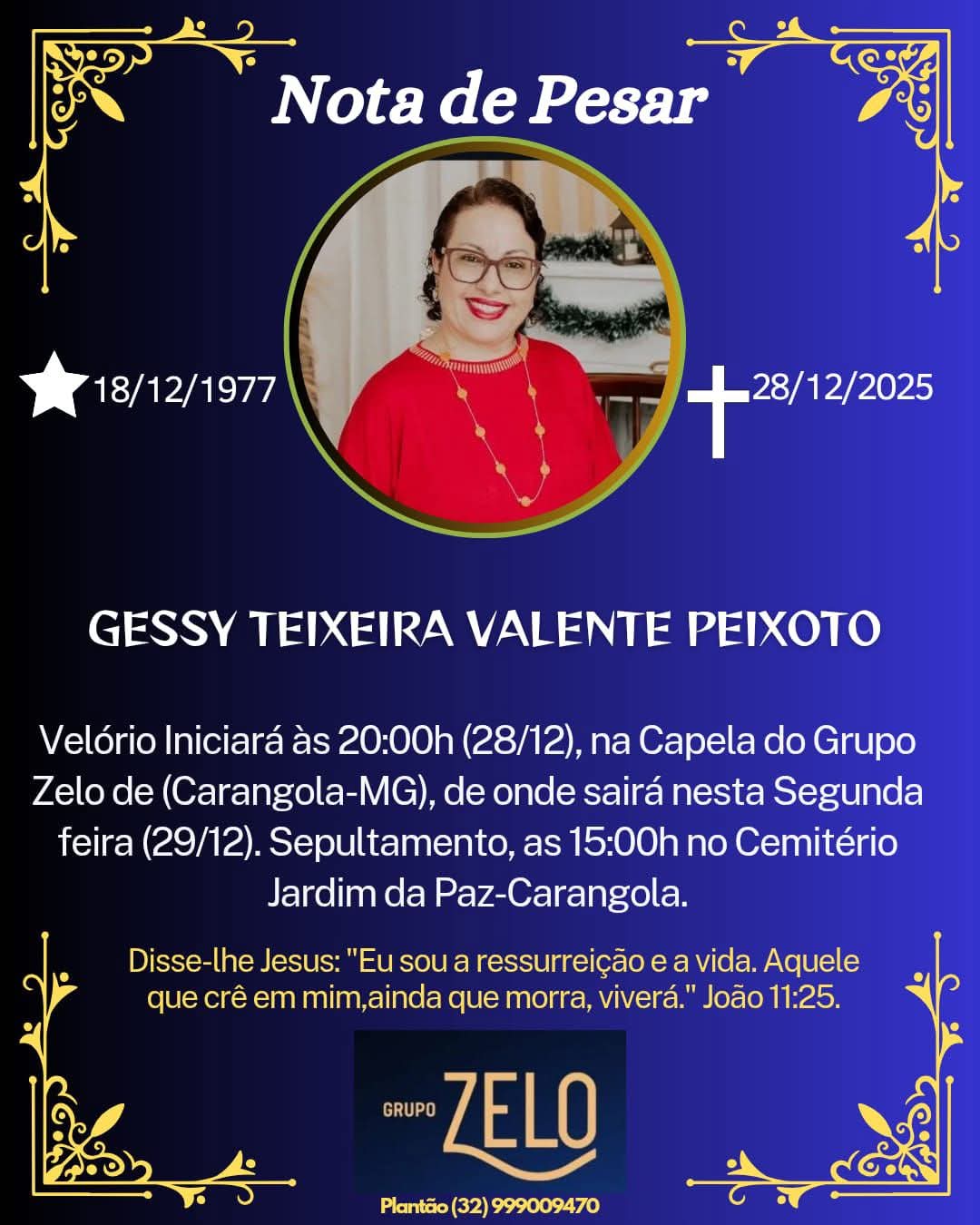 Sem categoria FALECEU GESSY TEIXEIRA VALENTE PEIXOTO DE CARANGOLA 28 de dezembro de 2025 0 Post Views: 0