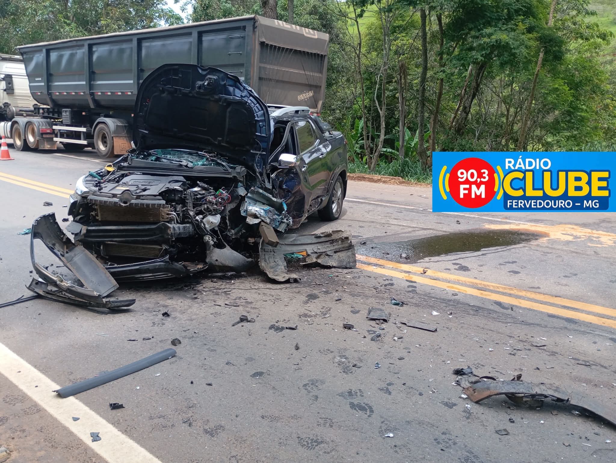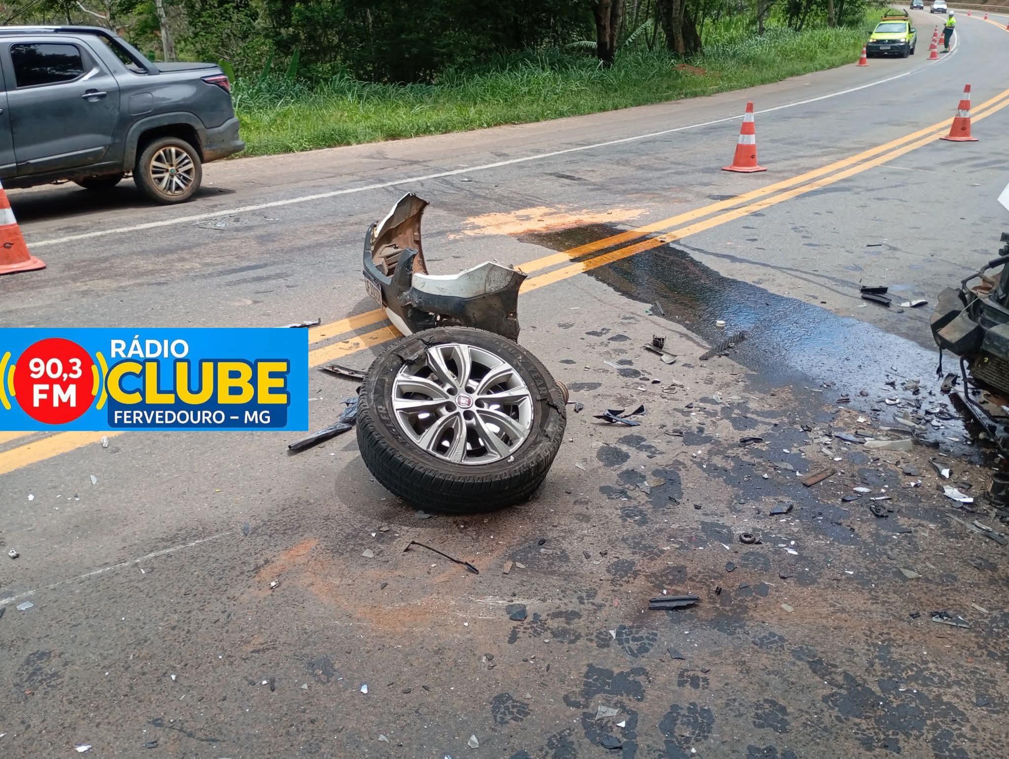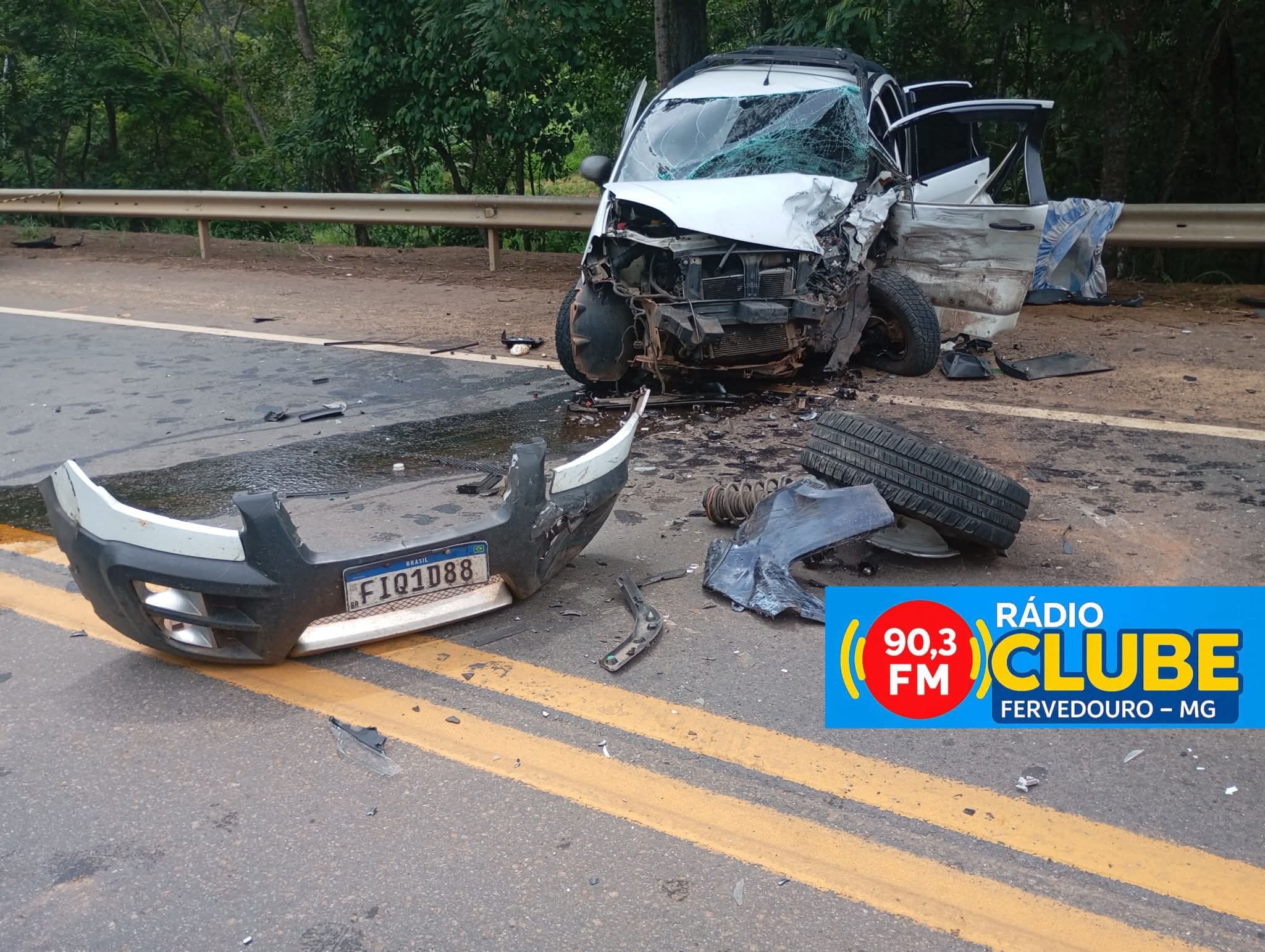 Um grave acidente ocorreu no início da tarde deste sábado (03/01/26) na BR 116, na saída de Fervedouro para Divino, onde houve a colisão frontal entre dois veículos, sendo um Fiat Idea que seguia em direção à Fervedouro e uma caminhonete Fiat Toro que seguia para a região nordeste do Brasil.