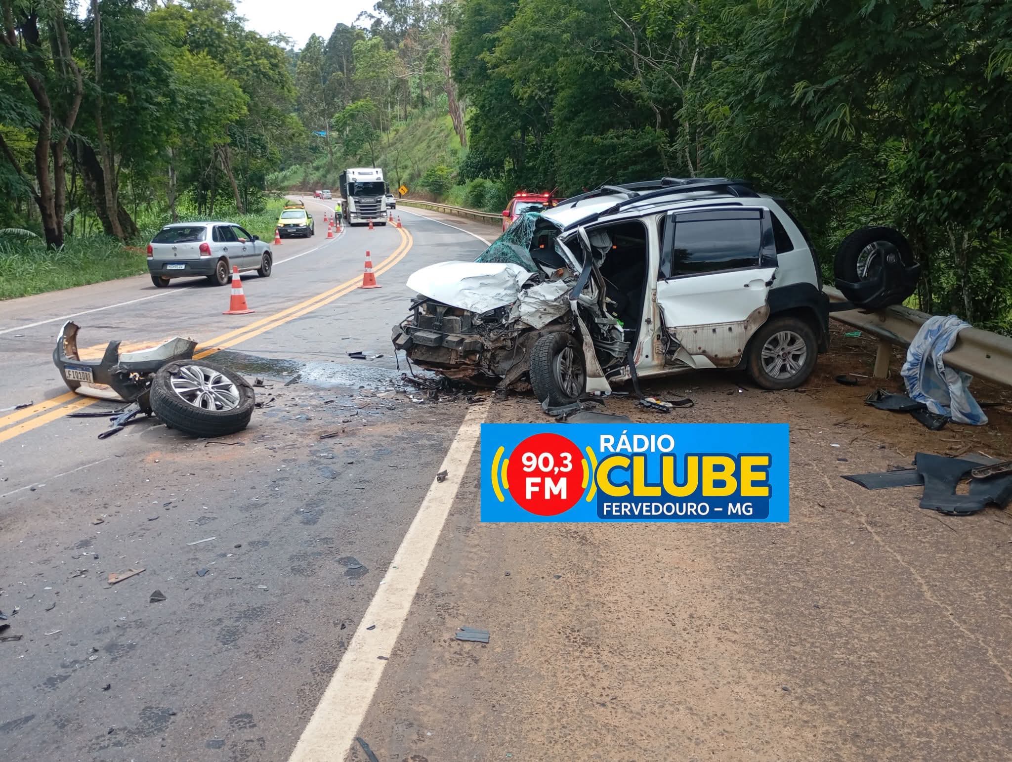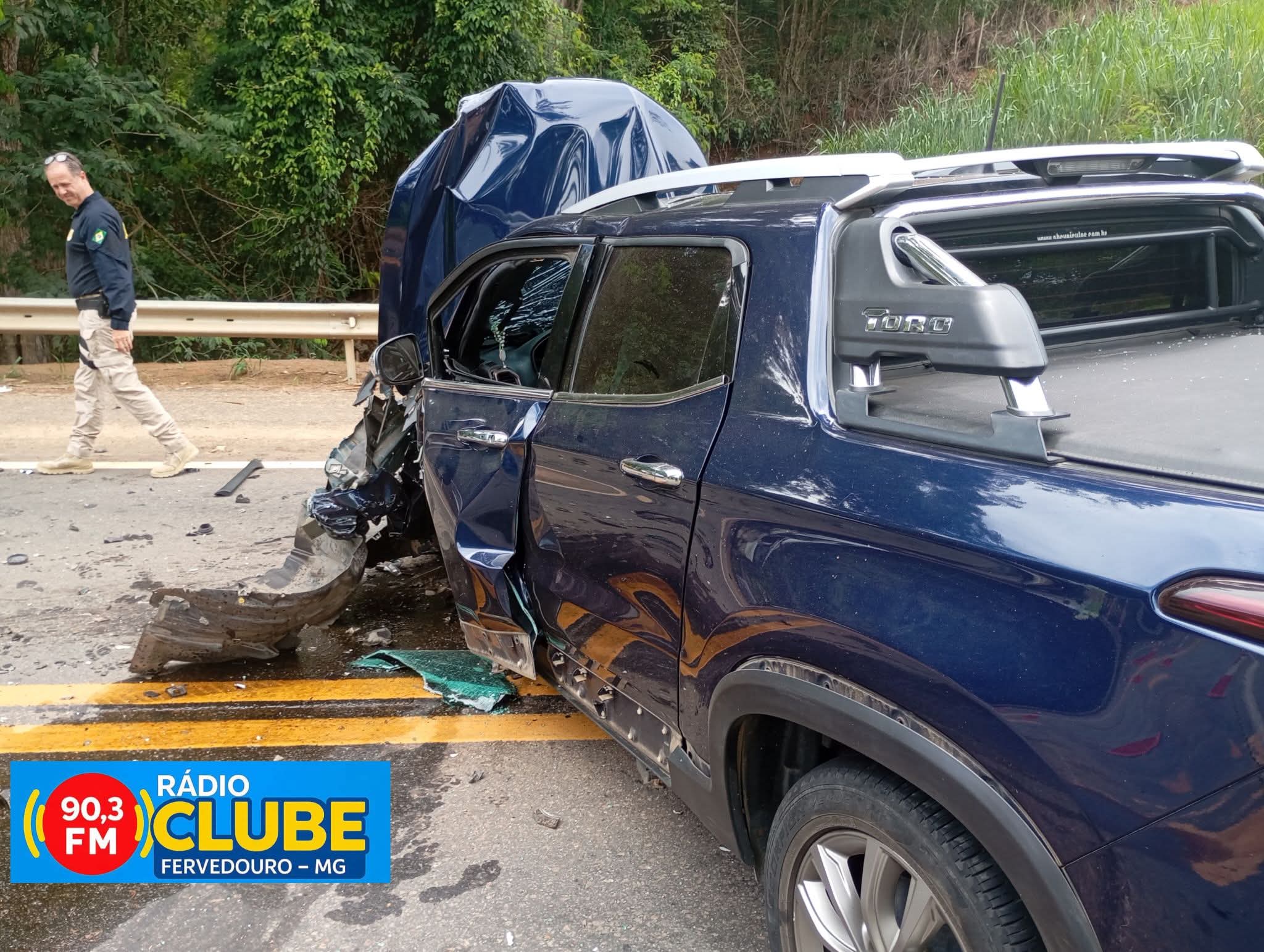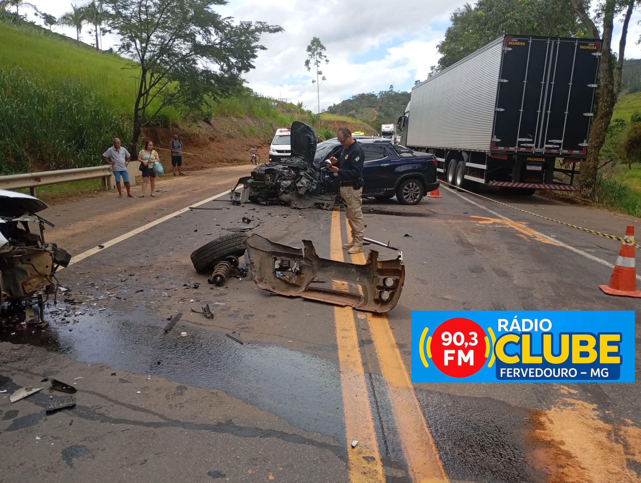 Um grave acidente ocorreu no início da tarde deste sábado (03/01/26) na BR 116, na saída de Fervedouro para Divino, onde houve a colisão frontal entre dois veículos, sendo um Fiat Idea que seguia em direção à Fervedouro e uma caminhonete Fiat Toro que seguia para a região nordeste do Brasil.