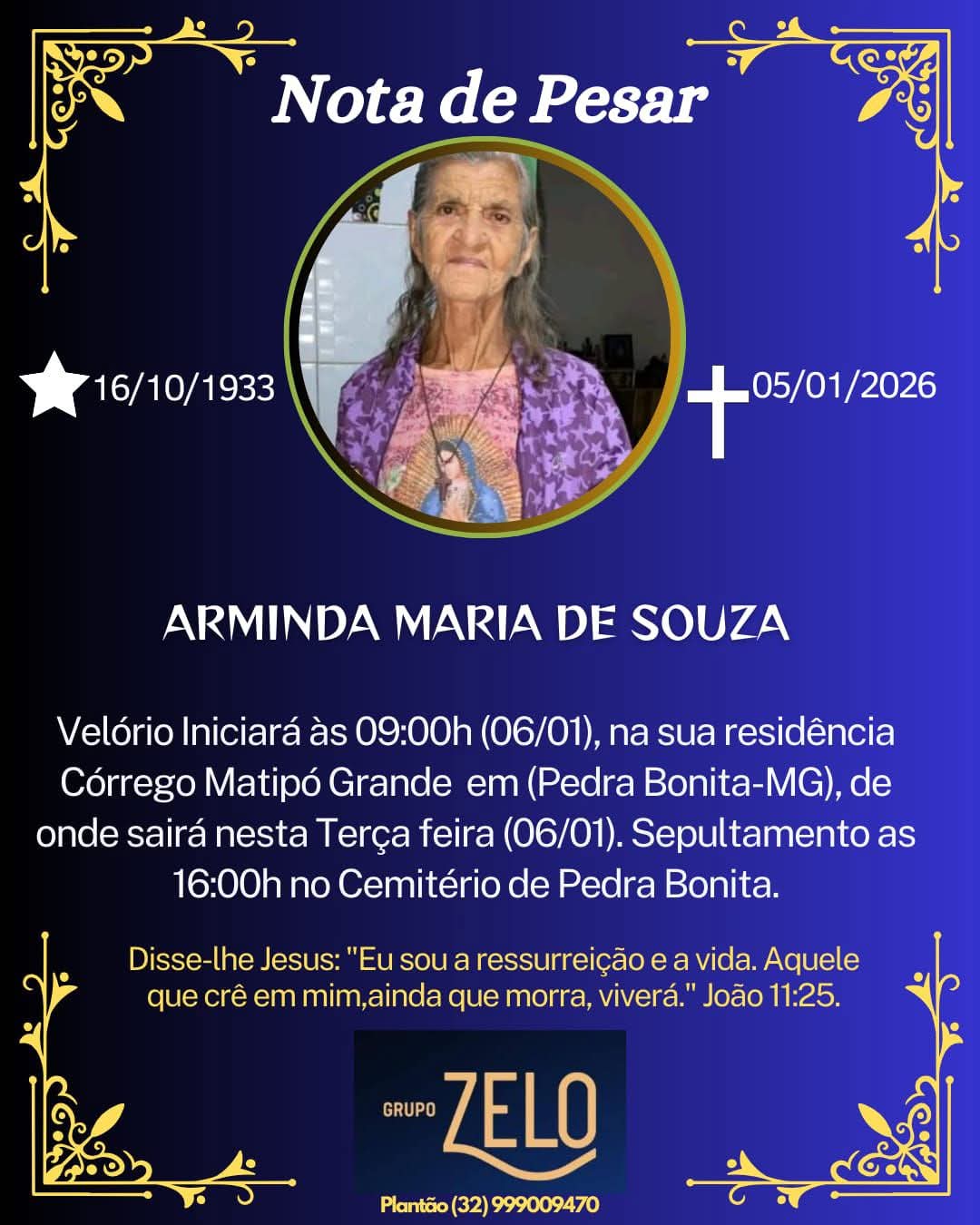 FALECEU ARMINDA DE SOUZA, DE PEDRA BONITA