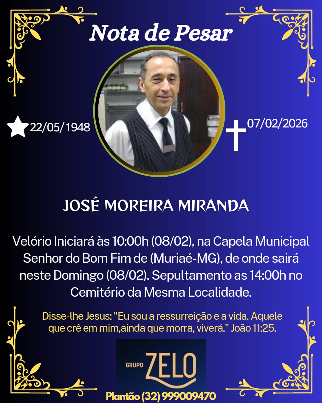 FALECEU JOSÉ MOREIRA MIRANDA, DE MURIAÉ