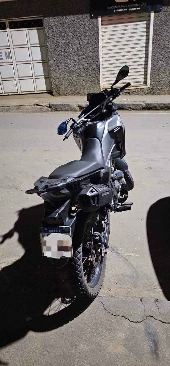 Durante a vistoria minuciosa na motocicleta — uma Honda/XRE 300 Sahara, cor cinza —, os policiais identificaram indícios de adulteração nos sinais identificadores do motor e do chassi, além de inconsistências na placa. Após consulta aos sistemas informatizados, confirmou-se que se tratava de um veículo clonado.