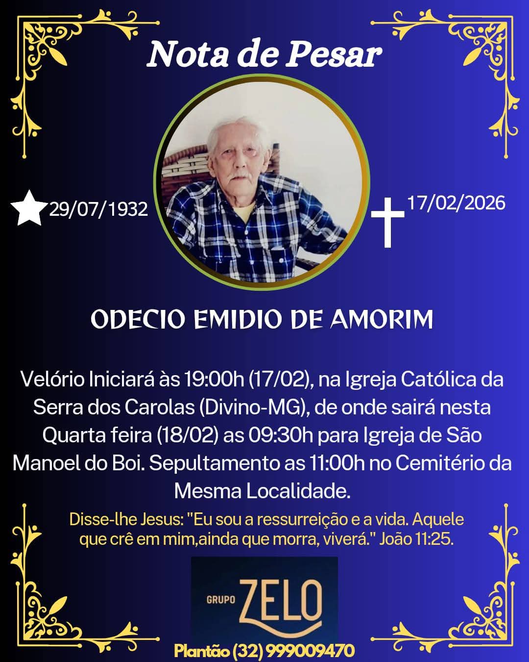 FALECEU ODECIO EMÍDIO DE AMORIM,DE DIVINO
