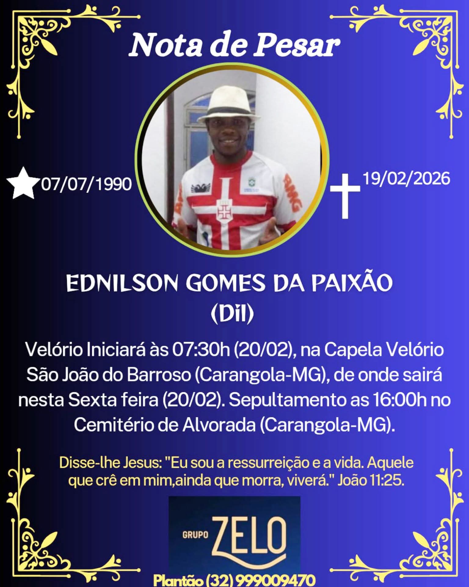 Sem categoria FALECEU EDNILSON GOMES DA PAIXÃO (DIL) , DE CARANGOLA 20 de fevereiro de 2026 0 Post Views: 0