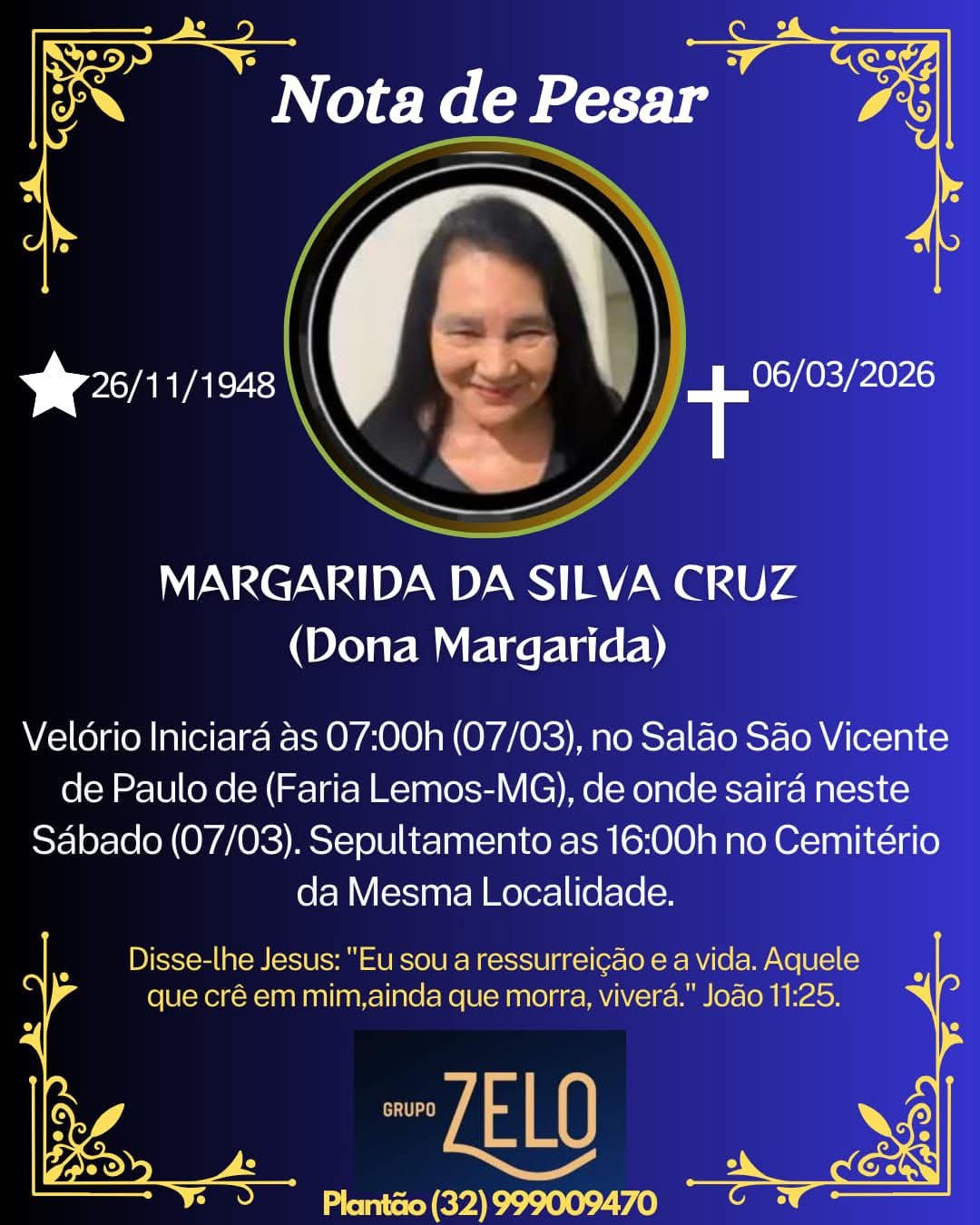 FALECEU MARGARIDA DA SILVA CRUZ DE FARIA LEMOS