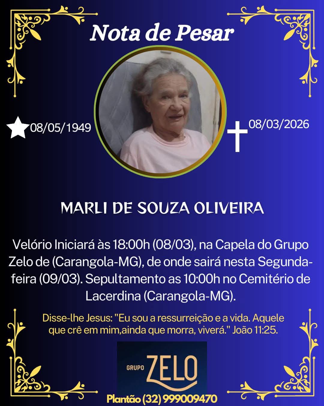FALECEU MARLI DE SOUZA, DE CARANGOLA