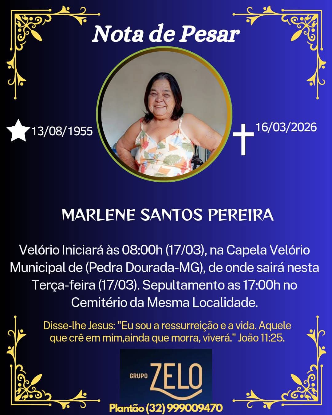 FALECEU MARLENE SANTOS PEREIRA, DE PEDRA DOURADA
