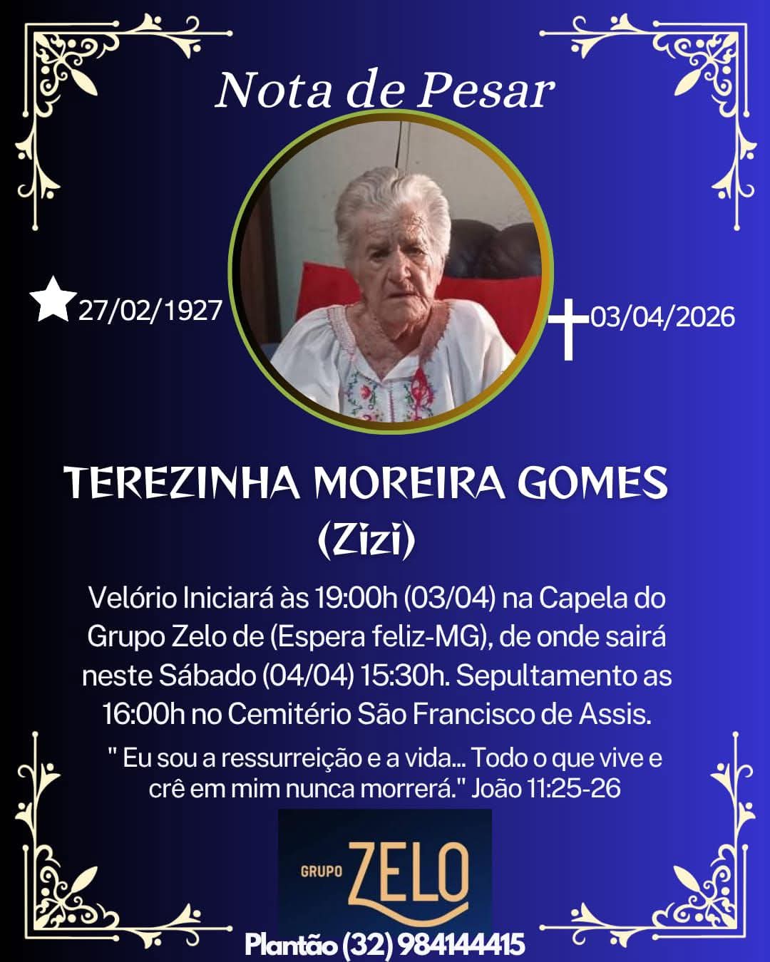 FALECEU TEREZINHA MOREIRA GOMES (ZIZI) DE ESPERA FELIZ